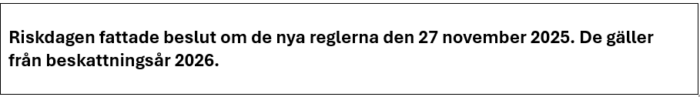 Reglerna är inte beslutade än utan vi väntar på riksdagens beslut.